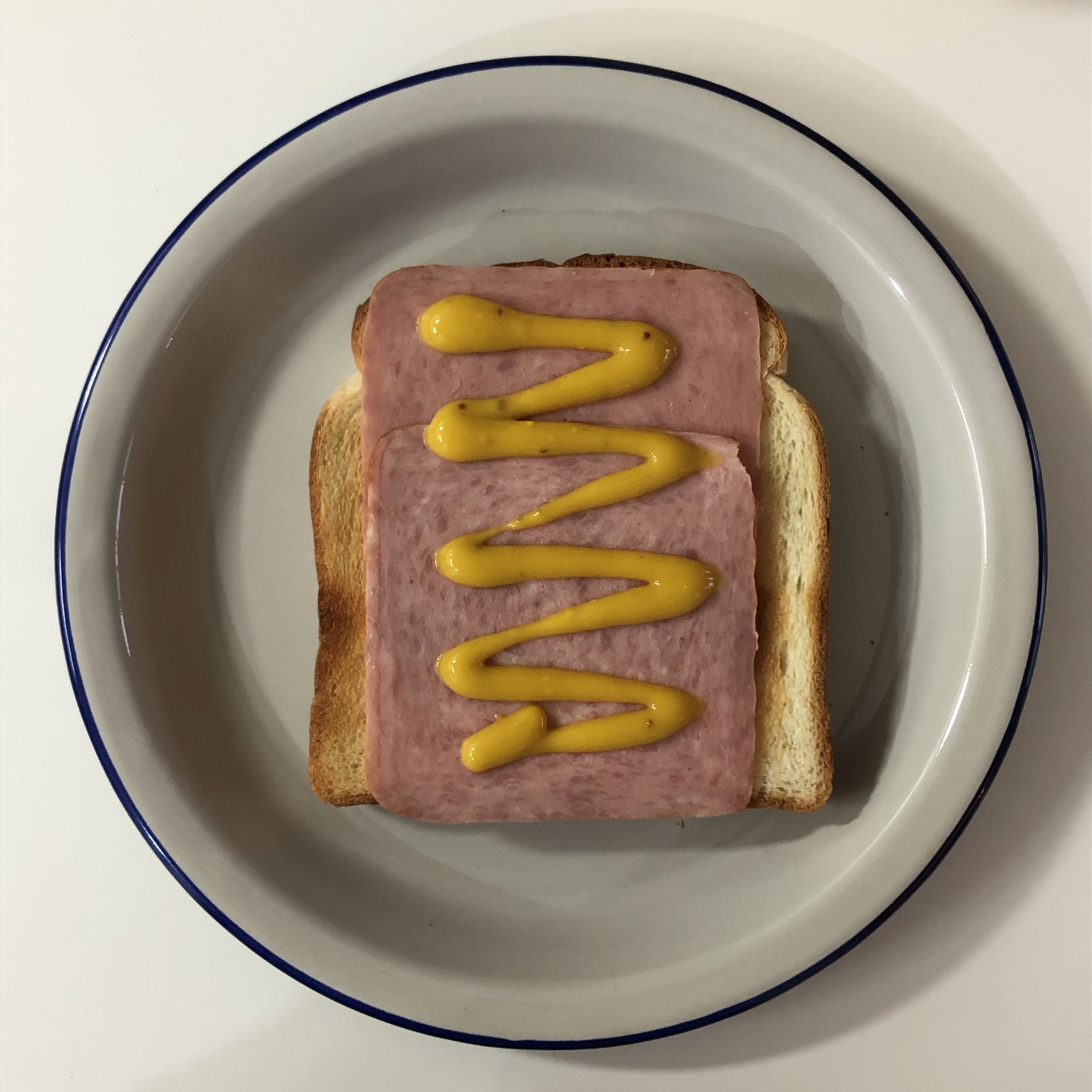 2. 빵에 샌드위치용 햄을 올리고 머스타드소스를 바르고 치즈를 올려주세요! 사이에 소스를 넣는 게 더 깔끔하게 먹을 수 있어 좋더라고요.