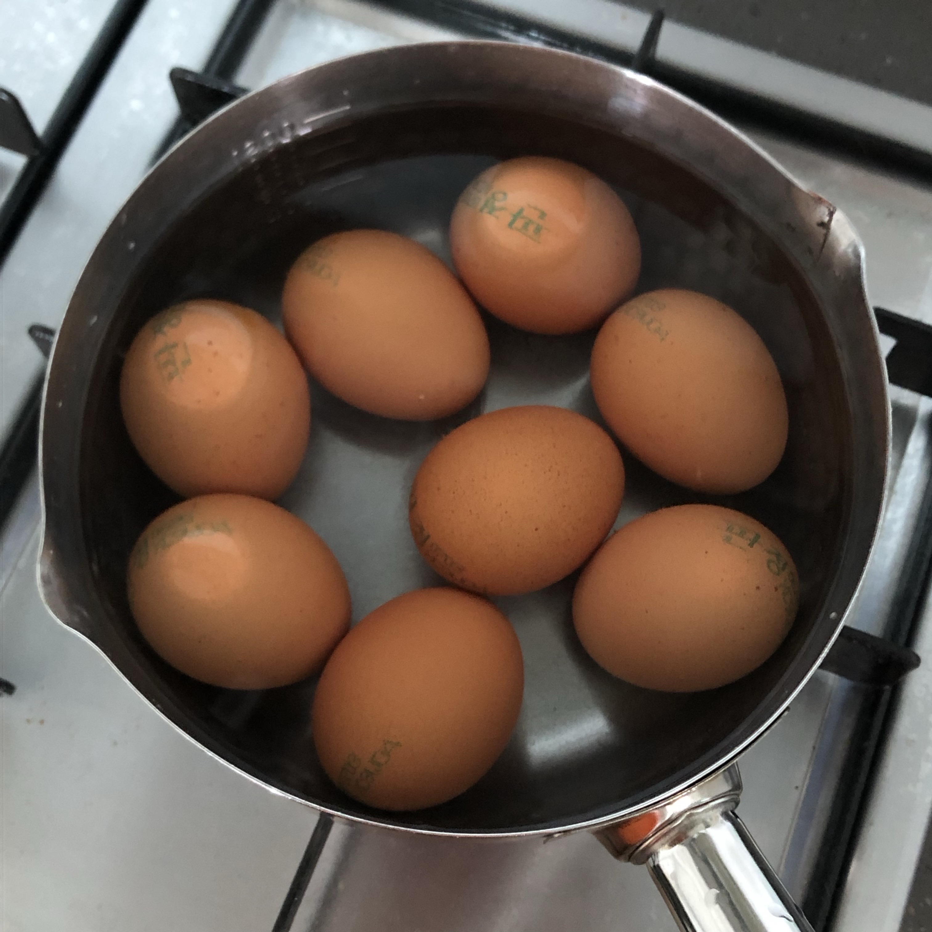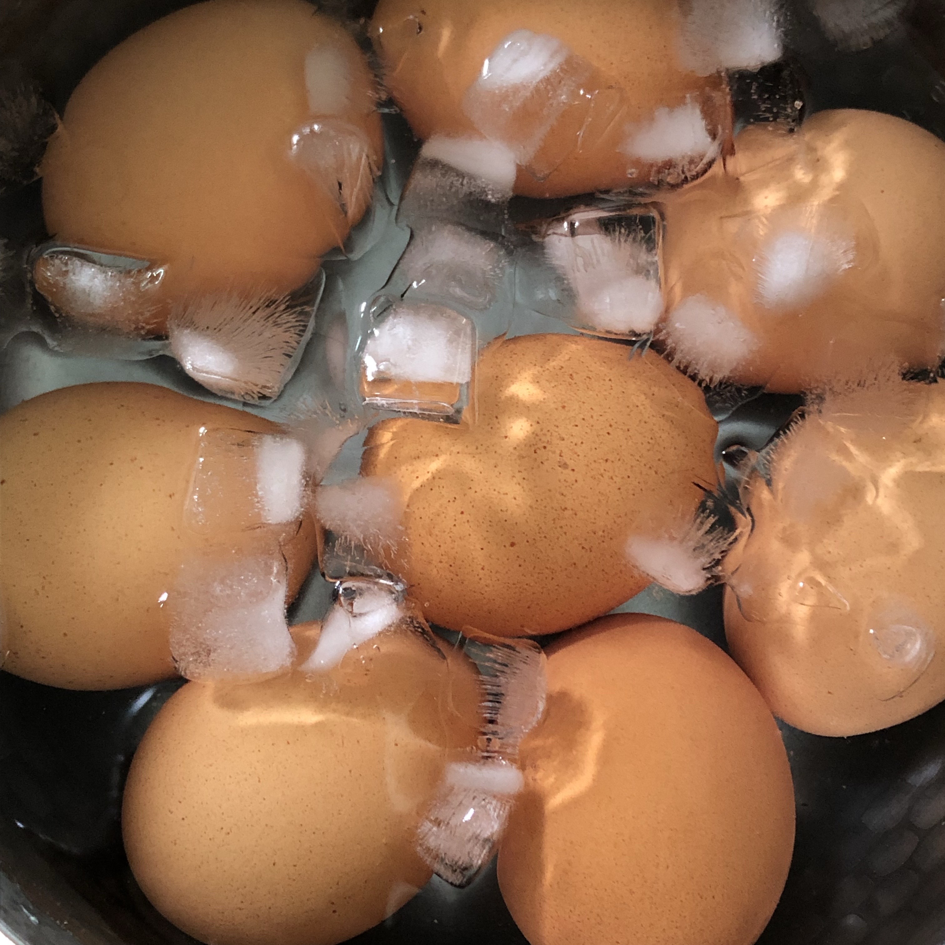 1. 계란을 삶아주세요. 물에 소금과 식초를 넣어 끓여주시고, 저는 12분 정도 삶는답니다~ 껍질을 잘 까기 위해서 잘 삶아진 계란은 차가운 얼음물에 충분히 식혀준다음 까서 준비해주세요~